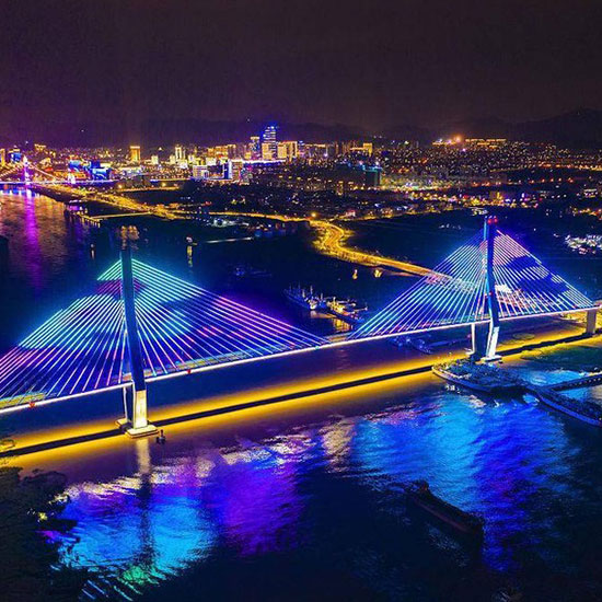 橋梁全彩LED燈光是通過安裝帶DMX512控制芯片的燈具,再通過電腦、控制器進(jìn)行編程,使燈光能按程序展現(xiàn)不同效果,常用效果有炫彩、跑馬、漸變、像素屏。應(yīng)用場景:橋梁亮化工···